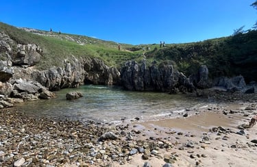 Después paramos en Aviles para tomarnos un café en su plaza del ayuntamiento y volvimos a desplazarnos hasta Gijón (no entraba en nuestros planes pero como no pararnos a ver la Playa de San Lorenzo) hicimo noche allí (un parking de autocarvanas GRATUITO, con bastantes plazas y muy cerca de la ciudad). Al dia siguiente aprovechamos para hacer algunas compras y volver a desplazarnos hacia la Playa de Cobijeru (accediendo a ella por un sendero precioso y corto para al final encontrarte con esta maravilla de playa de interior).
